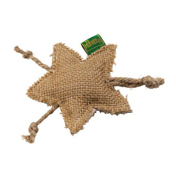Gioco per gatto a forma di stella in juta. Il gioco contiene all’interno il catnip, l’erba gatta attrattiva con un odore irresistibile.