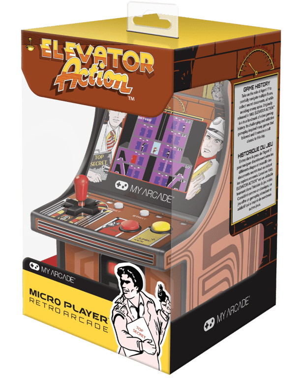 Scoprite il mini terminale My Arcade – Micro Player Elevator Action! Pubblicato originariamente nel 1983, ELEVATOR ACTION? è una pietra miliare nella storia dei videogiochi. Il suo gameplay stimolante e coinvolgente ha ispirato molti dei giochi successivi e rimane un classico di culto ancora oggi. I Microgiocatori MY ARCADE® sono macchine arcade retrò da 6,75 pollici con licenza e da collezione. Presentano un’immagine originale sull’involucro, uno schermo a colori retroilluminato da 2,75 pollici e un joystick rimovibile. I Micro Players sono ideali per gli appassionati di giochi retrò che amano giocare, collezionare o esporre i giochi classici. La grafica è ispirata ai cabinet arcade originali? Schermo a colori retroilluminato da 2,75 ? Joystick rimovibile? Perfetto per qualsiasi sala giochi, ufficio o vetrina? Altoparlante esterno, controllo del volume e presa per cuffie da 3,5 mm ? Alimentazione tramite cavo Micro-USB (non incluso) o 4 batterie AA (non incluse) – Prodotto nuovo