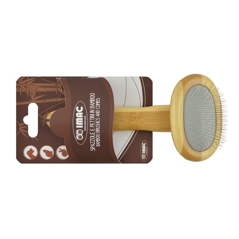 Cardatore per cani e gatti in bamboo naturale con denti in acciaio. Ideale per lisciare, districare e rimuovere tutti i corpi estranei dal pelo.