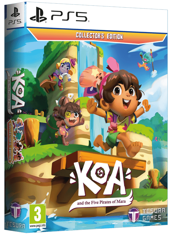 Scopri Koa e i cinque pirati di Mara in edizione da collezione su PS5! Unisciti a Koa e al suo migliore amico Napopo in un’avventura ricca di azione attraverso l’isola di Mara! Superate le trappole, manovrate in un ambiente pericoloso ed esplorate una serie di paesaggi mozzafiato nel tentativo di recuperare il bottino rubato dai pirati. Koa e i cinque pirati di Mara – Edizione da collezione include: – Gioco fisico – Artbook – Colonna sonora – Portachiavi Koa – PIN-Chitos – Set di cartoline – Scatola da collezione PUBLISHER TESURA GENERE Platformer 3d, Avventura SUPPORTO Videogioco su disco SISTEMA DI PLATINA Playstation 5 CLASSE DI ETÀ PEGI 3 Attraversate l’isola selvaggia, schivate le astute trappole e sconfiggete i più famosi boss pirata in questo affettuoso tributo al classico platform adventure. – Sblocca un arcipelago pezzo per pezzo. Dalle spiagge sabbiose ai vulcani ribollenti, ci sono ben sei isole affascinanti e colorate da visitare, ognuna delle quali trabocca di segreti e oggetti da collezionare. – Rilassatevi o mettete il coltello nella piaga e sfidate voi stessi. – Prodotto nuovo