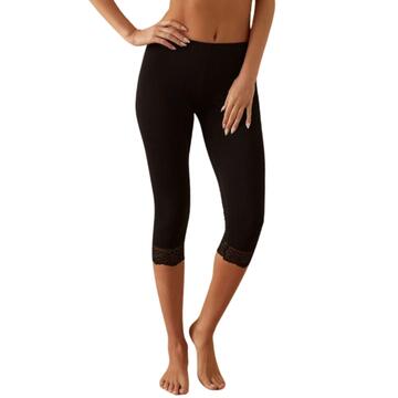 Leggings estivo modello Capri, con morbido pizzo elasticizzato sul fondo. Realizzato in fresco cotone stretch, traspirante ed elasticizzato, per garantire un'ottima vestibilitàTaglie: S, M, L, XLColori: Nero