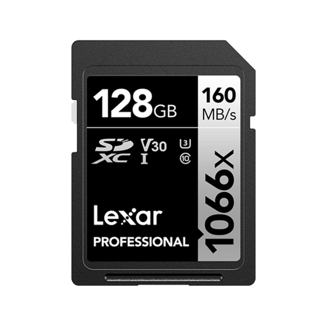 Lexar Professional 1066x. Capacità: 128 GB, Tipo di scheda flash: SDXC, Classe di memoria flash: Classe 10, Tipo di memoria interna: UHS-I, Velocità di lettura: 160 MB/s, Velocità di scrittura: 120 MB/s, Classe di velocità UHS: Classe 3 (U3), Classe di velocità video: V30. Colore del prodotto: Nero – Prodotto nuovo