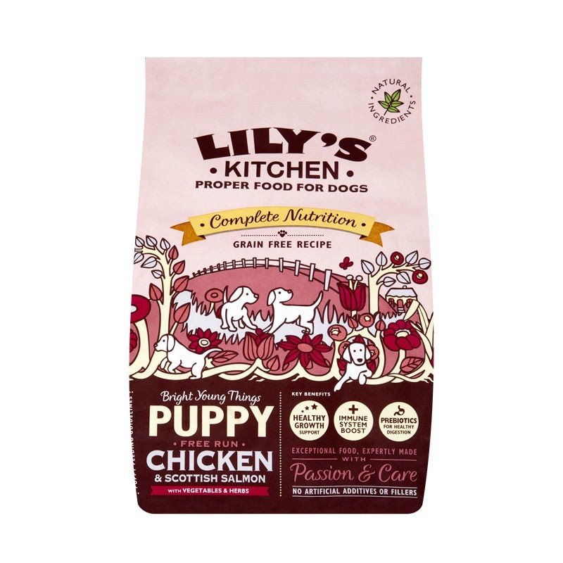 Le crocchette per cuccioli Lily’s Kitchen Puppy Recipe con Pollo, Salmone e Piselli sono una ricetta completa priva di cereali che utilizza solo con ingredienti preparati al momento, insieme a frutta, verdura ed erbe botaniche scelte con cura.