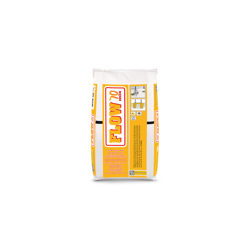 Malta da ripristino Flowmix 70 è un premiscelato cementizio colabile autolivellante ad alto modulo elastico UTILIZZO: Reintegrare strutturalmente pilastri e travi con getto casserato Ancorare tirafondi e strutture metalliche Inghisare binari metallici di portoni, gru e macchinari in genere Riempire giunti rigidi tra elementi prefabbricati Ricostruire teste di pali e diaframmi Ripristinare pavimentazioni in calcestruzzo armato, industriali, stradali, aeroportuali e di parcheggi Getti di rifacimento (ad esempio fosse ascensori) VANTAGGI: Impermeabilità all’acqua Elevate resistenze meccaniche Difficilmente soggetta a usura Buona livellabilità Ancoraggi ad alta resistenza Assenza di vuoti nel ripristino Qualità Volteco Leader e punto di riferimento nel settore di impermeabilizzazioni Da sempre propone una gamma di prodotti di alta qualità al 100% made in Italy Esperienza ed innovazione al servizio dei professionisti.