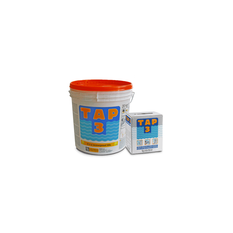 Tap 3 è una malta idraulica impermeabile a presa rapida Ideale per lavori veloci di impermeabilizzazione localizzati, anche in presenza di acqua in pressione  UTILIZZO: Sigillatura rapida di venute d’acqua localizzate in pressione Interventi rapidi di preparazione e completamento di opere di impermeabilizzazione Sigillatura di fessurazioni in abbinamento al mastice idroespansivo AKTI-VO 201 Bocche di lupo Fosse ascensore Tunnel, sottopassi e infrastrutture simili (esistenti) VANTAGGI: Ottima impermeabilizzazione Presa rapida Assenza di ritiro Blocco istantaneo di venute d’acqua anche se in pressione Facile lavorabilità Alta resistenza meccanica Qualità Volteco Leader e punto di riferimento nel settore di impermeabilizzazioni Da sempre propone una gamma di prodotti di alta qualità al 100% made in Italy Esperienza ed innovazione al servizio dei professionisti.