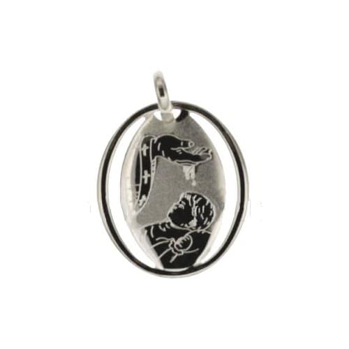 Ciondolo medaglia da battesimo in oro bianco 750/00 (18kt), fonte battesimale incisa, lavorazione lucida e satinata, dimensioni 1,30 x 1,50 cm. Referenza: 803321714873 Non è quello che cercavi? Scopri tutte le medaglie da battesimo o i nostri gioielli in oro
