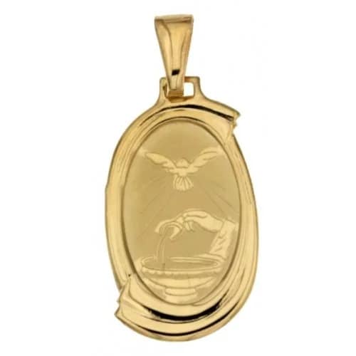 Ciondolo medaglia da battesimo in oro giallo 750/00 (18kt), fonte battesimale incisa, lavorazione lucida e satinata, dimensioni 1,50 x 2,40 cm. Referenza: 803321710093 Non è quello che cercavi? Scopri tutte le medaglie da battesimo o i nostri gioielli in oro