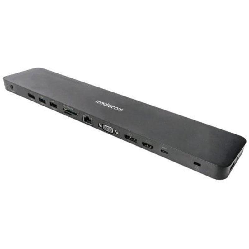Mediacom m-docktpcp docking station pro power delivery 100 w 12 connessioni 1 x usb-c 3.1 – 1 x usb-c 100 w – 2 x usb-a 3.2 – 1 x usb-a 3.0 battery charghing 1.2 – 2 x usb 2.0 – 1 x hdmi – 1 displayport – 1 x vga -1 x rj-45 gigabit – 1 x jack 3.5mm