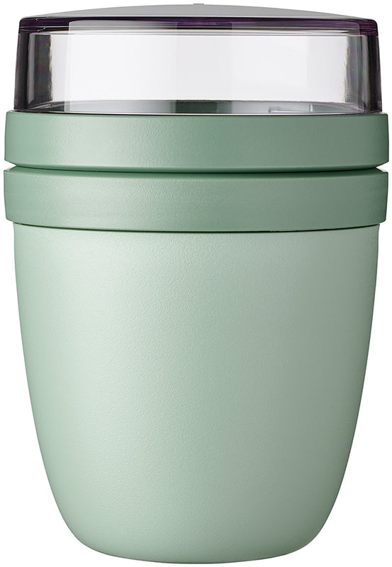 pratico box da pranzo che consiste in due contenitori separati e adattabili consente di conservare e trasportare pranzi, spuntini, zuppe, insalate, frutta e verdura il contenitore inferiore ha una capacità di 500 ml e quello superiore trasparente di 200 ml il coperchio è al 100% a prova di perdite e mantiene il contenuto sempre fresco il contenitore senza coperchio può essere riscaldato nel microonde il box è adatto per essere conservato in frigorifero e nel congelatore Materiale: