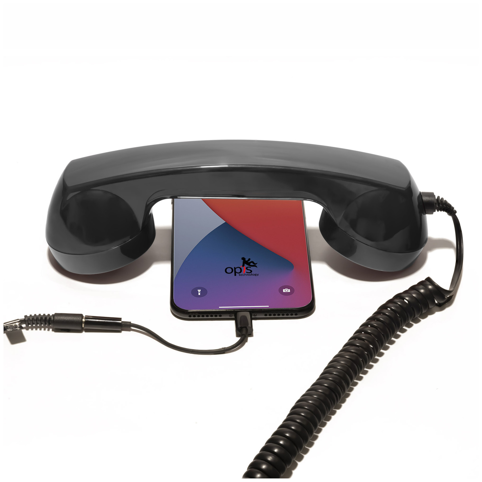 OPIS 60s MICRO: portatile retrò per telefoni cellulari L’Opis 60s micro (versione compatibile con iPhone) è un portatile retrò nello stile classico degli anni ’60, compatibile con l’iPhone. La consegna include un adattatore da jack audio da 3,5 mm a Lightning certificato MFI. Grazie alla cornetta, la potenza delle radiazioni alla testa può essere ridotta fino al 99% e la qualità della voce migliorata. Caratteristiche tecniche: tradizionale cornetta, basta collegarla per effettuare una chiamata. Completamente classica: senza fronzoli, pulsanti o LED superflui. Compatibile con iPhone con spinotto da 3,5 mm o Lightning (adattatore Lightning incluso) (versione Android/Windows venduta separatamente) Dimensioni: lunghezza: 21 cm, altezza: 7 cm, larghezza: 6 cm, peso: 0,3 kg. – Prodotto nuovo