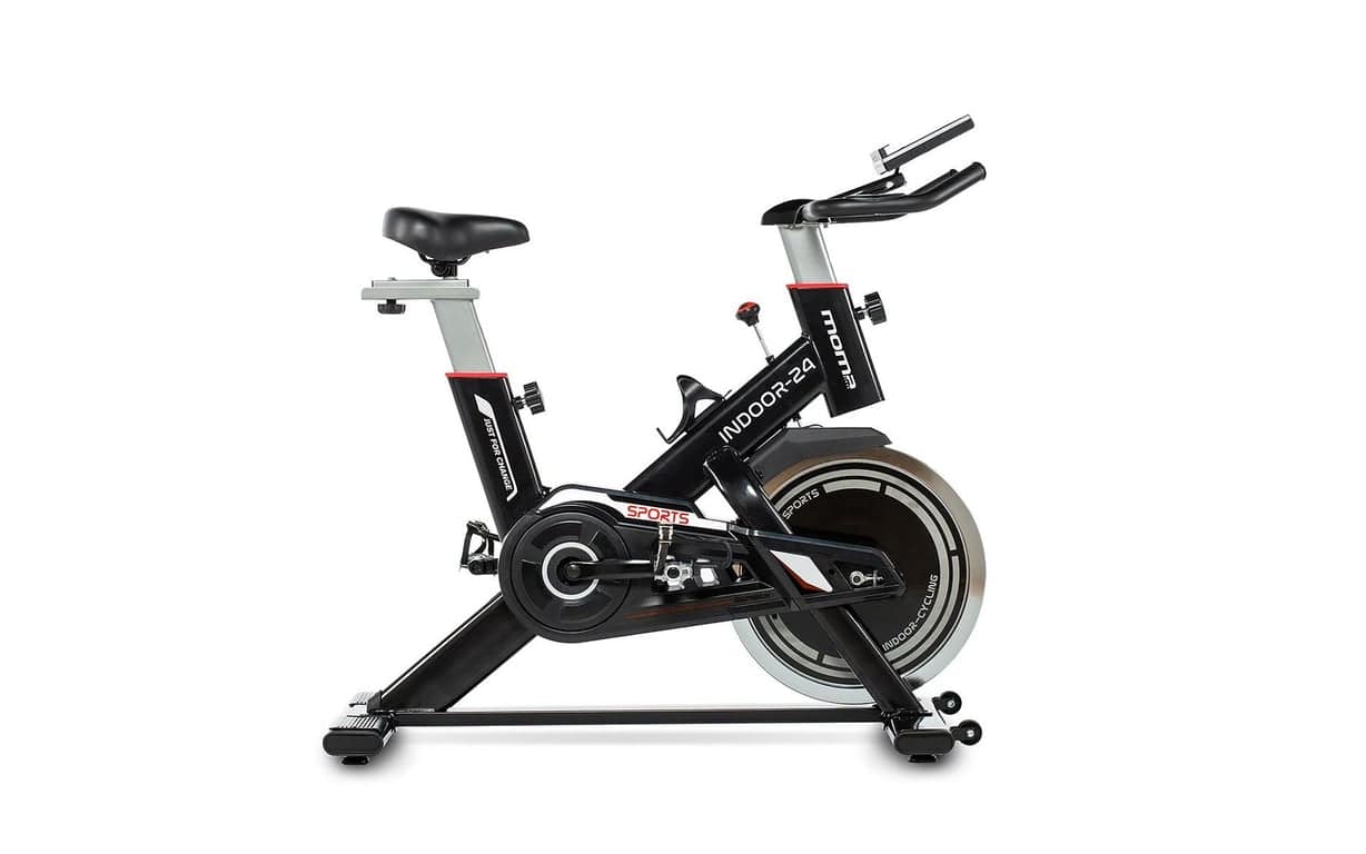 Moma Bikes Bicicletta Indoor-24 con volano da 24 kg, schermo LCD, 4 sensori cardiaci integrati nel manubrio, sella ergonomica. – nuovo