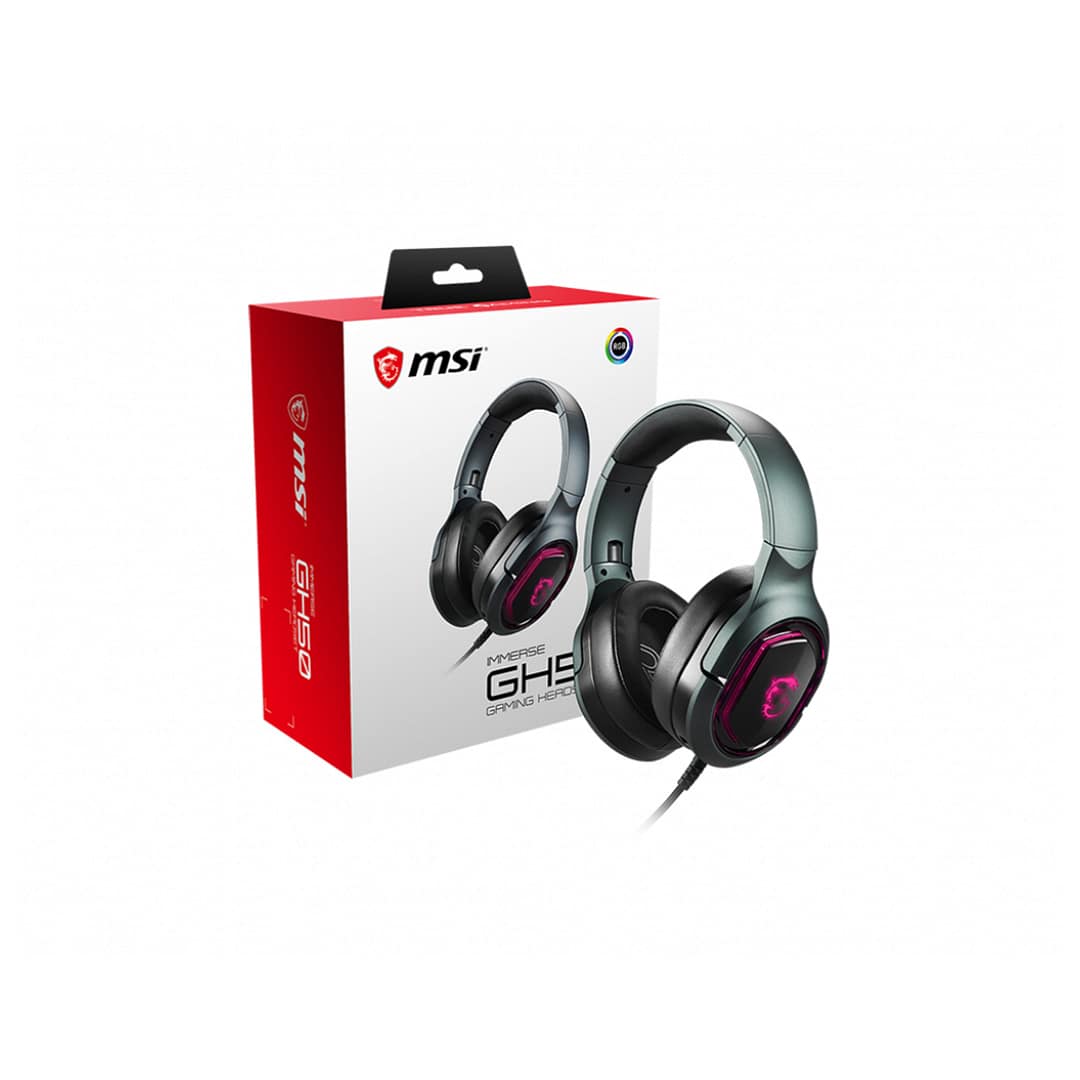 MSI Immerse GH50. Tipo di prodotto: Cuffia. Tecnologia di connettività: Con cavo. Uso consigliato: Gioco. Frequenza delle cuffie: 20 – 20000 Hz. Lunghezza del cavo: 2,2 m. Peso: 300 g. Colore del prodotto: nero – Prodotto nuovo