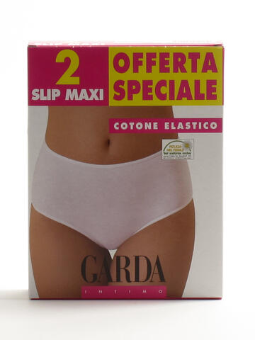 Slip donna Maxi Garda, in cotone elasticizzato.Confezione da 2 slip.Disponibile nelle taglie 4 – 5 – 6 – 7 – 8 nei colori bianco