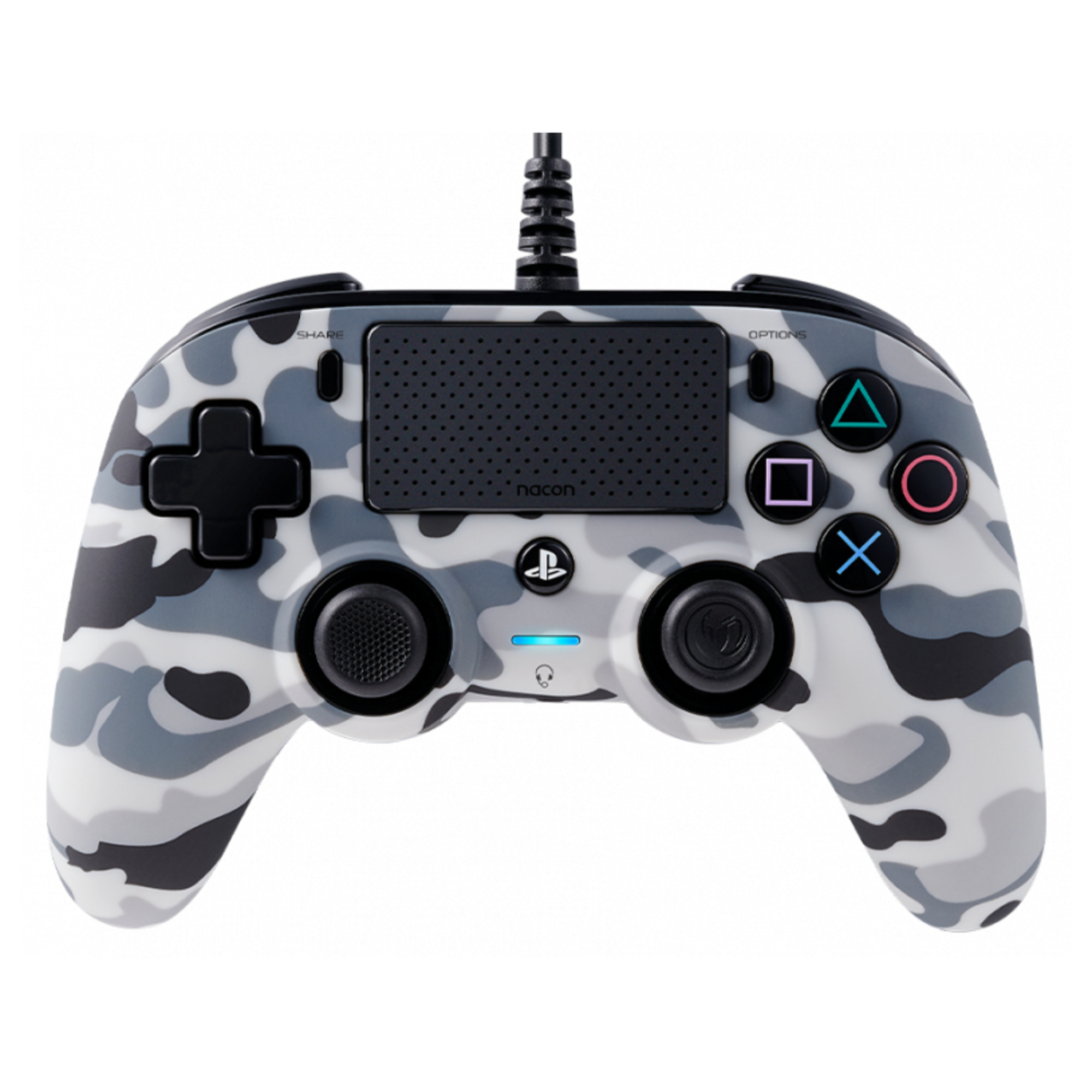 Compatto e solido, questo controller cablato con licenza ufficiale per PS4 offre anche la piena compatibilità con i giochi per PC. Disponibile in 2 colori diversi, questo controller cablato compatto ma potente, con licenza ufficiale per PS4, è uno dei bestseller di NACON. Ideale per completare la configurazione di una console, è anche compatibile con i giochi per PC. Questa nuova versione in look mimetico del Compact Controller di NACON piacerà ai giocatori di FPS e di infiltrazione.Il Compact Controller cablato con licenza ufficiale di NACON per PS4? offre una serie di funzioni indispensabili, come il touchpad, i motori a vibrazione e l’indicatore LED della posizione del giocatore. Include anche i pulsanti d’azione con il simbolo della Playstation e i comandi SHARE, OPTIONS e PS. Questa nuova versione del controller compatto NACON, dall’aspetto mimetico, piacerà ai giocatori di FPS e di infiltrazione e, grazie al suo cavo di 3 metri, troverà sicuramente posto nel vostro salotto. Il Compact Controller è anche compatibile con il gioco su PC (X-Input) per una versatilità ancora maggiore. – Prodotto nuovo