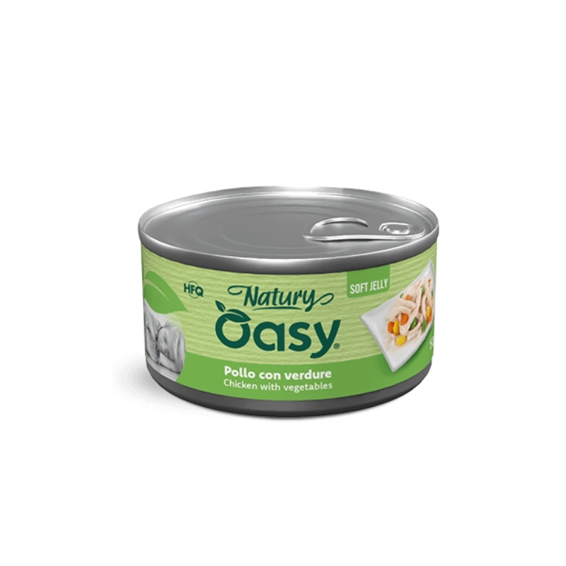 Oasy Natury Soft Jelly Pollo con Verdure per Cani, contiene fino al 55% di tagli selezionati di carne o pesce di alta qualità, certificati HFQ (Human Food Quality), per offrire solo il meglio in termini di gusto e benessere.Una ricetta irresistibile con tenero pollo e verdure, senza aromi, coloranti o conservanti artificiali, arricchita da una gelatina naturale ancora più morbida per esaltare sapore e appetibilità. Oasy non effettua alcuna sperimentazione su animali, ogni alimento è stato studiato per garantire la massima qualità nel loro pieno rispetto. Con ingredienti naturali, senza l’aggiunta di OGM, soia, coloranti o appetizzanti chimici. – 150g,…