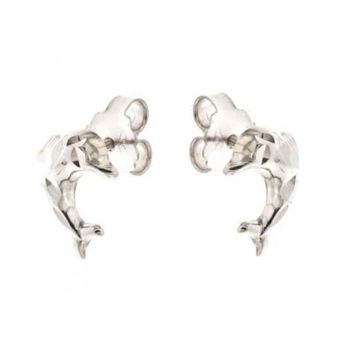 Orecchini da bimba in oro bianco 750/00 (18 kt) a forma di delfino, chiusura a vite, lavorazione sfaccettata, dimensioni 0,70 x 1,00 cm, peso 1,00 grammi. Referenza: 803321715565