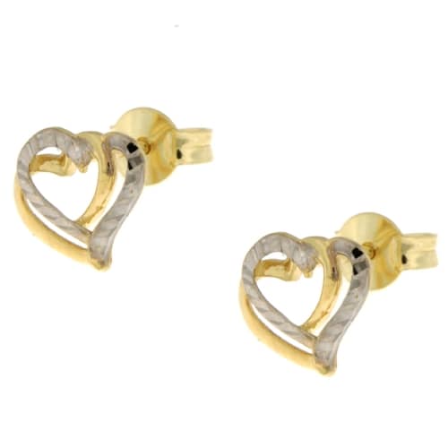 Orecchini Donna Oro Bianco Giallo GL101787 Orecchini da donna in oro bianco e giallo 18 kt (750/00). Orecchini a forma di cuore con lavorazione lucida e diamantata. La dimensione degli orecchini è di 0.80 x 0.70 cm. Il peso degli orecchini è di 1.20 grammi. Referenza: GL101787