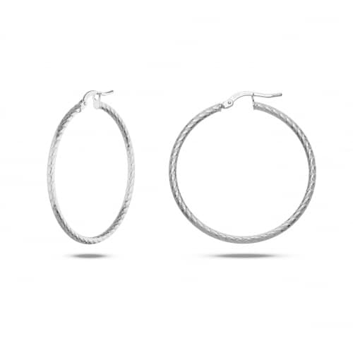 Orecchini Donna Oro Bianco GL101536 Orecchini a cerchio da donna in oro bianco 18 kt (750/00). Orecchini con lavorazione satinata. Il diametro interno degli orecchini è di 3 cm. Lo spessore degli orecchini è di 0.20 cm. La chiusura degli orecchini è a baionetta. Il peso degli orecchini è di 2.00 grammi. Referenza: GL101536