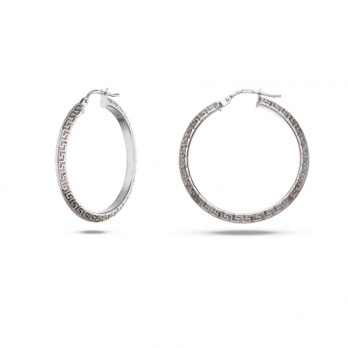 Orecchini Donna Oro Bianco GL101542 Orecchini a cerchio da donna in oro bianco 18 kt (750/00). Orecchini con lavorazione lucida e motivo greca. Il diametro interno degli orecchini è di 2.5 cm. Lo spessore degli orecchini è di 0.25 cm. La chiusura degli orecchini è a baionetta. Il peso degli orecchini è di 2.10 grammi. Referenza: GL101542