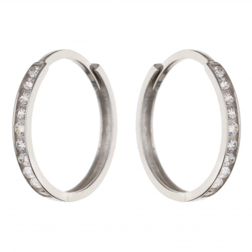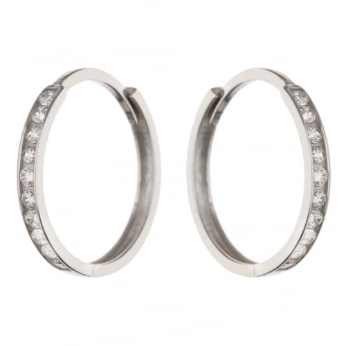 Orecchini Donna Oro Bianco GL101547 Orecchini a cerchio da donna in oro bianco 18 kt (750/00). Orecchini con pietre zirconi di colore bianco. Il diametro interno degli orecchini è di 1.40 cm. Lo spessore degli orecchini è di 0.20 cm. La chiusura degli orecchini è a scatto. Il peso degli orecchini è di 2.30 grammi. Referenza: GL101547