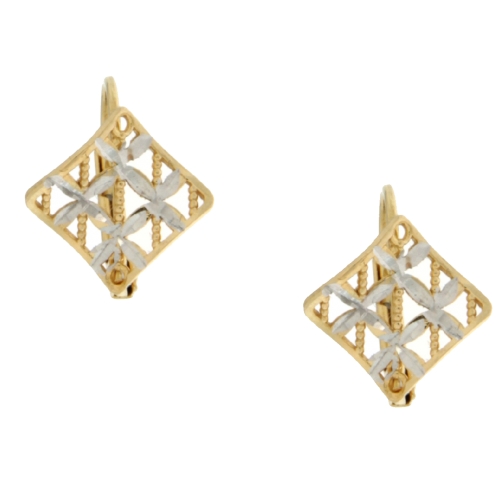 Orecchini Donna Oro Giallo Bianco GL100827 Orecchini da donna in oro giallo e bianco 750/00 (18kt). La chiusura degli orecchini è a monachina. La dimensione degli orecchini è di 1.20 x 1.20 cm. Il peso degli orecchini è di 2.00 grammi. Referenza: GL100827
