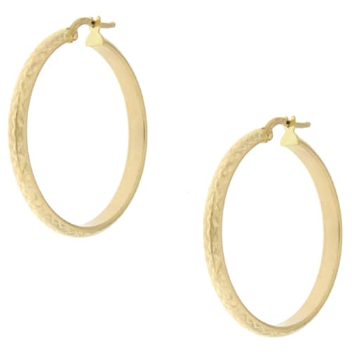 Orecchini Donna Oro Giallo GL100990 Orecchini a cerchio da donna in oro giallo 18 kt (750/00). Orecchini con lavorazione diamantata. Il diametro interno degli orecchini è di 3.10 cm. Lo spessore degli orecchini è di 0.40 cm. La chiusura degli orecchini è a baionetta. Il peso degli orecchini è di 3.80 grammi. Referenza: GL100990