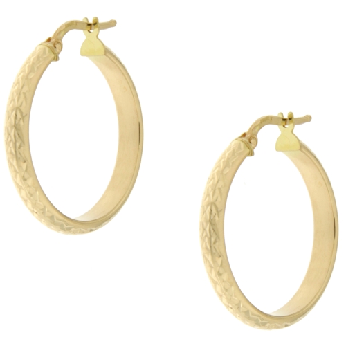 Orecchini Donna Oro Giallo GL100991 Orecchini a cerchio da donna in oro giallo 18 kt (750/00). Orecchini con lavorazione diamantata. Il diametro interno degli orecchini è di 2.20 cm. Lo spessore degli orecchini è di 0.30 cm. La chiusura degli orecchini è a baionetta. Il peso degli orecchini è di 2.80 grammi. Referenza: GL100991