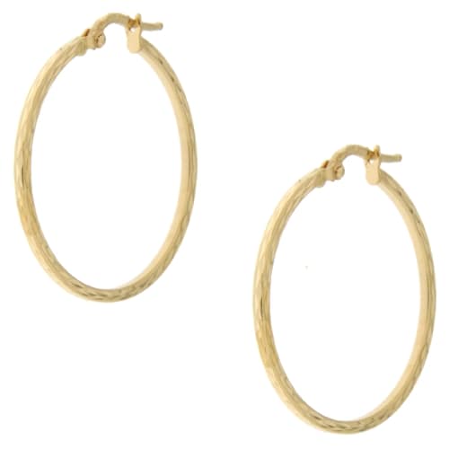 Orecchini Donna Oro Giallo GL100997 Orecchini a cerchio da donna in oro giallo 18 kt (750/00). Orecchini con lavorazione diamantata. Il diametro interno degli orecchini è di 2.60 cm. Lo spessore degli orecchini è di 0.20 cm. La chiusura degli orecchini è a baionetta. Il peso degli orecchini è di 2.00 grammi. Referenza: GL100997