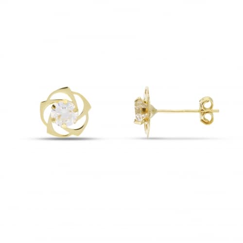 Orecchini Donna Oro Giallo GL101757 Orecchini a lobo da donna in oro giallo 18 kt (750/00). Orecchini punto luce a forma di rosa con pietre zirconi. La dimensione degli orecchini è di 0.90 x 0.90 cm. Il peso degli orecchini è di 0.70 grammi. Referenza: GL101757