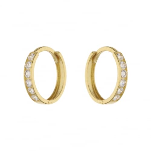 Orecchini Donna Oro Giallo GL101759 Orecchini a cerchio da donna in oro giallo 18 kt (750/00). Orecchini con pietre zirconi. Il diametro degli orecchini è di 0.80 cm. Il peso degli orecchini è di 1.00 grammi. Referenza: GL101759