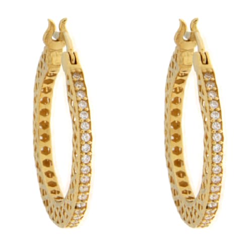 Orecchini Donna Oro Giallo GL101920 Orecchini a cerchio da donna in oro giallo 750 (18 KT). Orecchini con lavorazione traforata e pietre zirconi bianchi. Il diametro interno degli orecchini è di 2,50 cm. Il peso degli orecchini è di 3,80 grammi. Referenza: GL101920 Valorizza la tua eleganza con questi splendidi orecchini a cerchio in oro giallo 750 (18 KT). La raffinata lavorazione traforata, unita ai luminosi zirconi bianchi, crea un accessorio unico, capace di esaltare qualsiasi outfit. Perfetti per una serata speciale o per aggiungere un tocco di stile ai tuoi look quotidiani, questi orecchini sono la scelta ideale per chi cerca un gioiello sofisticato e senza tempo.