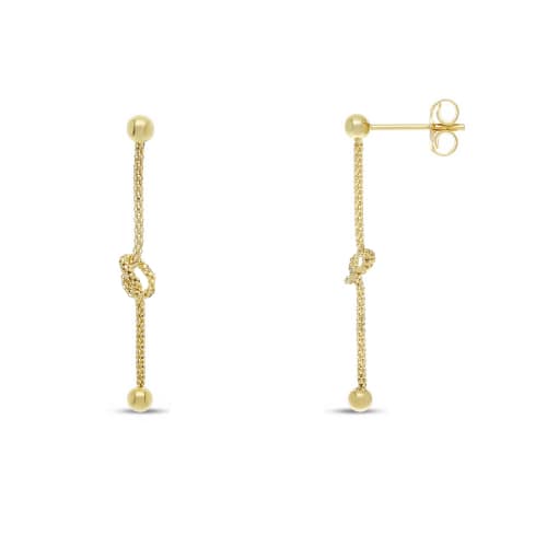 Orecchini Donna Oro Giallo GL101958 Orecchini da donna in oro giallo 750 (18 KT). Orecchini pendenti con nodo e sfere. La lunghezza degli orecchini è di 3,30 cm. Il peso degli orecchini è di 1,60 grammi. Referenza: GL101958 Questi splendidi orecchini pendenti in oro giallo 750 (18 KT) catturano la luce con il loro delicato intreccio a nodo e le sfere luminose. Un gioiello raffinato, pensato per chi ama distinguersi con classe. Leggeri e sofisticati, aggiungono un tocco di fascino ad ogni tuo movimento, perfetti da indossare nelle occasioni speciali o per impreziosire il tuo look quotidiano.