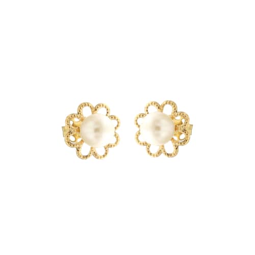 Orecchini da donna in oro giallo 750/00 (18 kt) con perle, lavorazione puntinata, chiusura a vite, diametro perla 6,5 mm, peso 1,40 grammi. Referenza: 803321707252 Non è quello che cercavi? Scopri tutti i orecchini in oro o i nostri gioielli in oro