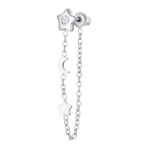 Orecchino Donna Luca Barra OK1495 Mono orecchino donna in acciaio, stella con zircone bianco, luna e stella. Lunghezza: 3,8 cm. Misura stella: 5 x 6 mm. Misura luna: 4 x 6 mm. Diametro zircone: 3 mm. Questo mono orecchino in acciaio con stella, luna e zircone bianco è un piccolo gioiello dal grande impatto, perfetto per aggiungere un tocco luminoso a ogni look. Referenza: OK1495 Articolo spedito con garanzia e astuccio Luca Barra