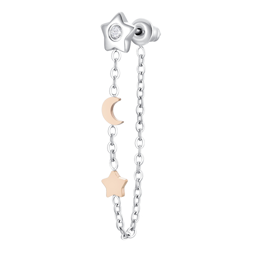 Orecchino Donna Luca Barra OK1496 Mono orecchino donna in acciaio, stella con zircone bianco, luna e stella IP rose. Lunghezza: 3,8 cm. Misura stella: 5 x 6 mm. Misura luna: 4 x 6 mm. Diametro zircone: 3 mm. Scopri la magia celestiale di questo mono orecchino in acciaio IP rose con stella, luna e zircone bianco, un gioiello delicato che illumina il tuo look con un tocco di raffinatezza e mistero. Referenza: OK1496 Articolo spedito con garanzia e astuccio Luca Barra