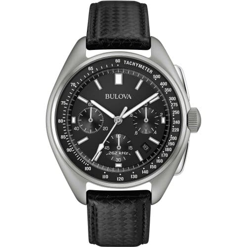 Orologio Bulova da uomo della collezione Moon Watch, Movimento al quarzo, Cassa in acciaio, Cinturino in pelle, Vetro zaffiro, Resistenza all’acqua fino a 5 bar. Referenza : 96B251 Bulova ha portato nello spazio il 2 agosto 1971 durante la missione Apollo 15, un cronografo sulla luna, personalizzato per le condizioni lunari dagli ingegneri Bulova, è stato indossato sulla luna dagli astronauti. Ora Bulova torna alla storia nuovamente con l’edizione speciale Lunar Pilot Chronograph, aggiornato con il nostro esclusivo movimento al quarzo ad alte prestazioni con una frequenza di 262 kHz per una precisione senza pari.