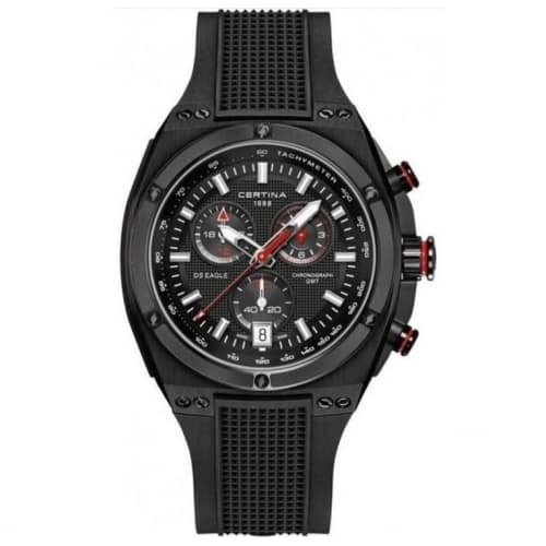 Orologio CERTINA DS EAGLE C023.739.17.051.00WR: 20 ATM – Cassa: 46 mm – Genere: Uomo – Materiale Cassa: Acciaio Inossidabile trattamento IP nero – Materiale Cinturino: Gomma – Movimento: Meccanico automatico – Funzioni: Chrono-GMT – Vetro: Zaffiro – Tipo Prodotto: Orologio da polso – Paese di Produzione: Svizzera – Confezione: Scatola Ufficiale
