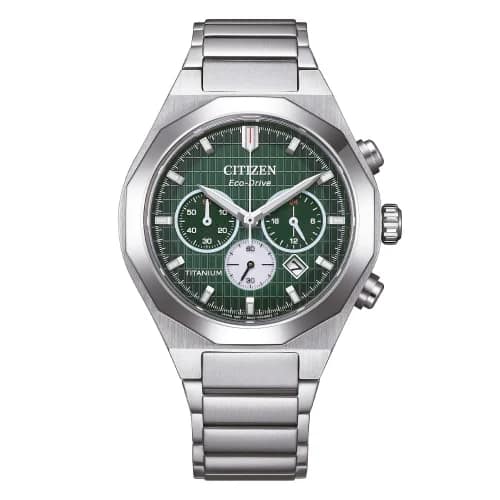 Orologio Citizen Zenshin Senkei Crono Super Titanio CA4691-59X Orologio da uomo Citizen della collezione Super Titanium. Il movimento dell’orologio è al quarzo Eco Drive (carica solare) con funzioni cronografo, datario e indicazione delle 24h giornaliere. La cassa è in Super Titanio, diametro 41 mm. Il bracciale è in Super Titanio. Il quadrante è di colore verde. La resistenza all’acqua è di 10 bar / 100 metri. Referenza: CA4691-59X Articolo spedito con garanzia e astuccio Citizen Cos’è la tecnologia Eco Drive? Una delle grandi sfide di Citizen era sviluppare una tecnologia che garantisse il funzionamento costante dell’orologio, ovunque nel mondo. Nel 1976, il brand ha rivoluzionato l’orologeria inventando il primo orologio analogico al quarzo alimentato a luce. Questa innovativa tecnologia, oggi conosciuta come Eco-Drive, utilizza esclusivamente la luce come fonte di energia, eliminando la necessità di sostituire la batteria. Il sistema Eco-Drive è in grado di generare energia da qualsiasi sorgente luminosa: luce artificiale, luce naturale e persino luce fioca, assicurando un funzionamento continuo e sostenibile dell’orologio. Cos’è la tecnologia Super Titanio? Il più leggero, il più resistente. Le straordinarie doti del Super Titanio sono una sfida ai limiti della natura. Il titanio ha spiccate caratteristiche di robustezza e resistenza alla corrosione. Ma la sua caratteristica principale è la leggerezza: il 40% più leggero dell’acciaio inox, a parità di robustezza. Il Super Titanio mantiene i pregi del titanio ma è 5 volte più resistente all’abrasione. Super Titanio è una esclusiva di Citizen.