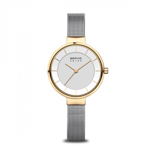 Orologio Donna Bering 14631-024 Orologio da donna Bering della collezione Solar. Il movimento dell’orologio è al quarzo a carica solare. La cassa è in acciaio PVD oro, diametro 31 mm. Il bracciale è in acciaio. Il quadrante è di colore bianco. La resistenza all’acqua è di 5 ATM / 50 metri. Referenza: 14631-024 Articolo spedito con garanzia ed astuccio originale Bering