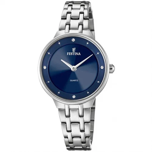 Orologio Donna Festina Mademoiselle F20600/3 Orologio da donna Festina della collezione Mademoiselle. Il movimento dell’orologio è al quarzo. La cassa è in acciaio, diametro 30.5 mm. Il bracciale è in acciaio. Il quadrante è di colore blu. La resistenza all’acqua è di 5 atm / 50 metri. Referenza: F20600/3 Articolo spedito con garanzia ed astuccio originale Festina