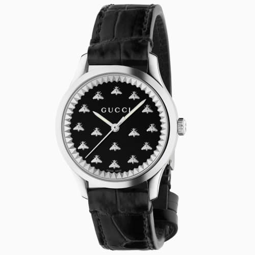 Orologio Donna Gucci G-Timeless YA1265055 Orologio da donna Gucci della collezione G-Timeless. Il movimento è al quarzo Swiss Made. La cassa è in acciaio, diametro 32 mm. Il cinturino è in pelle di colore nero. Il quadrante è di colore nero. Il vetro è zaffiro antiriflesso. La resistenza all’acqua è di 5 ATM / 50 metri. Referenza: YA1265055 Articolo spedito con astuccio originale Gucci I certificati di garanzia per gli orologi Gucci acquistati dopo il 1° marzo 2022 sono disponibili in esclusiva online. Scarica il certificato all’indirizzo watchwarranty.gucci.com aggiungendo il numero di serie inciso sul retro dell’orologio.