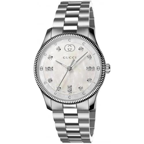 Orologio Donna Gucci G-Timeless YA1265064 Orologio da donna Gucci della collezione G-Timeless. Il movimento è al quarzo Swiss Made. La cassa è in acciaio, diametro 29 mm. Il bracciale è in acciaio. Il quadrante è di colore madreperla con 14 diamanti naturali. Il vetro è zaffiro antiriflesso. La resistenza all’acqua è di 5 ATM / 50 metri. Referenza: YA1265064 Articolo spedito con astuccio originale Gucci I certificati di garanzia per gli orologi Gucci acquistati dopo il 1° marzo 2022 sono disponibili in esclusiva online. Scarica il certificato all’indirizzo watchwarranty.gucci.com aggiungendo il numero di serie inciso sul retro dell’orologio.