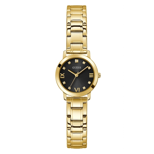 Orologio Donna Guess Melody GW0532L4 Orologio da donna Guess della collezione Melody. Il movimento dell’orologio è al quarzo. La cassa dell’orologio è realizzata in acciaio di colore oro, diametro 28 mm. Il bracciale dell’orologio è realizzato in acciaio di colore oro. Il quadrante è di colore nero con diamante naturale. La resistenza all’acqua è di 3 atm / 30 metri. Referenza: GW0532L4 Articolo spedito con astuccio originale e garanzia ufficiale Guess