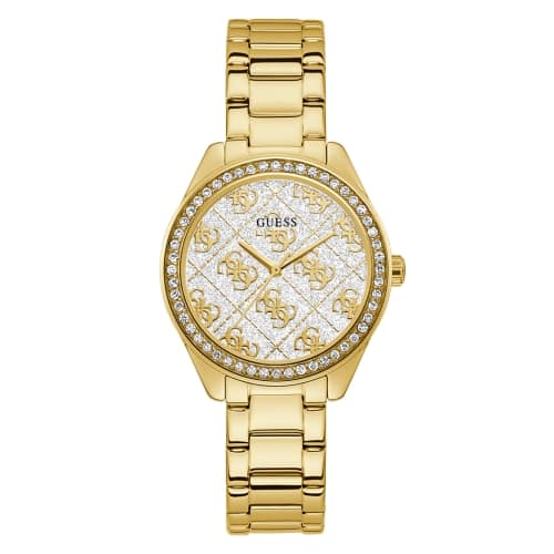 Orologio Donna Guess Sugar GW0001L2 Orologio da donna Guess della collezione Sugar. Il movimento dell’orologio è al quarzo. La cassa dell’orologio è realizzata in acciaio PVD oro, diametro 37 mm. Il bracciale dell’orologio è realizzato in acciaio PVD oro. Il quadrante è di colore bianco. La resistenza all’acqua è di 3 atm / 30 metri. Referenza: GW0001L2 Articolo spedito con astuccio originale e garanzia ufficiale Guess