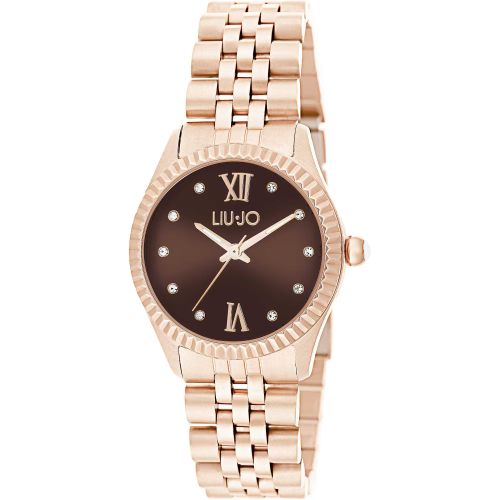 Orologio Donna Liu Jo Tiny TLJ1978 Orologio da donna Liu Jo della collezione Tiny. Il movimento dell’orologio è al quarzo. La cassa è in acciaio PVD oro rosa, diametro 32 mm. Il bracciale è in acciaio PVD oro rosa. Il quadrante è di colore marrone. La resistenza all’acqua è di 5 atm / 50 metri. Referenza: TLJ1978 Articolo spedito con astuccio e garanzia Liu Jo