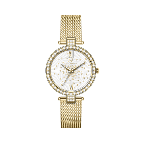 Orologio Donna Luca Barra BW357 Orologio Donna in acciaio IP gold con quadrante bianco, ghiera con cristalli bianchi e dettagli IP gold. Diametro cassa: 33 mm. Movimento Miyota, 5 ATM. Il quadrante bianco, pulito e luminoso, aggiunge un tocco di lusso e raffinatezza al tuo look. La ghiera dell’orologio è incastonata con cristalli bianchi scintillanti, che catturano l’attenzione e aggiungono un tocco di glamour all’orologio. La sua maestosa combinazione di dettagli raffinati lo rende una scelta eccezionale per coloro che cercano l’equilibrio perfetto tra stile e prestazioni. Referenza: BW357 Articolo spedito con astuccio e garanzia Luca Barra