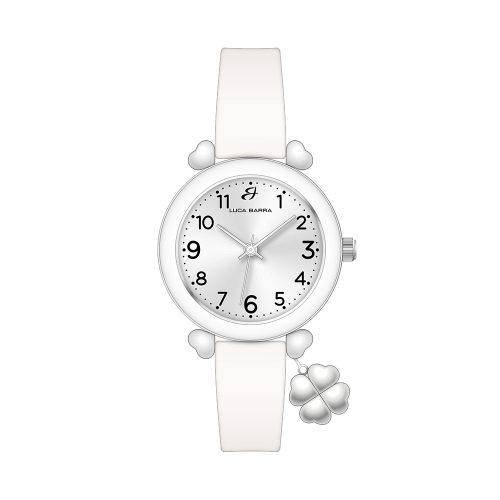 Orologio Donna Luca Barra BW394 Orologio donna fucsia con charm quadrifoglio. Diametro cassa: 31,5 mm Movimento Miyota, 5 ATM Solo Tempo Questo orologio da donna bianco con charm quadrifoglio è un’esplosione di colore e personalità, ideale per chi vuole aggiungere un tocco audace al proprio stile. Referenza: BW394 Articolo spedito con astuccio e garanzia Luca Barra