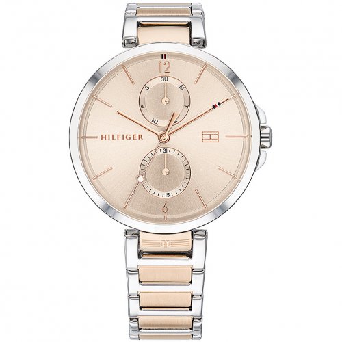 Orologio Da Donna Di Tommy Hilfiger Della Linea Angela. Orologio Con Cassa Rotonda Da 37 Mm In Acciaio Inossidabile Di Colore Rosa Dorato. Il Cinturino È In Acciaio Inossidabile Di Colore Two Tone. Orologio Multifunzione, Vetro Minerale E Impermeabilità Di 3 Atm. La Referenza È 1782127. Questo multifunzione verrà spedito con Scatola Originale Tommy Hilfiger