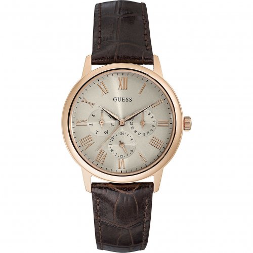 Orologio Guess da uomo della collezione Wafer, Movimento al quarzo, Cassa in acciaio placcato oro rosa, cinturino in pelle marrone, Quadrante khaki, W.R. 30 m. Referenza : W0496G1 L’orologio viene spedito con garanzia di 2 anni e astuccio originale. Non è quello che cercavi? Scopri tutti gli orologi Guess