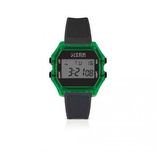 Orologio Cassa taglia large verde e nero con cinturino silicone nero. Referenza: IAM-KIT520 Descrizione Orologio composto da cassa verde e nero con cinturino silicone nero Funzioni principali Suoneria, segnale orario ogni ora, cronometro, sistema 12/24 ore Calendario Una volta impostato, il calendario indica il mese, il giorno della settimana, l’ora, i minuti e i secondi Durata batteria La batteria alimenta l’orologio per ca. 2 anni Luminosità La retro illuminazione di questo orologio impiega una luce elettroilluminescente (el), che perde il suo potere illuminante dopo un periodo d’uso molto prolungato. La luminosità generata da questa funzione è difficile da vedere sotto la luce solare diretta. Temperatura Intervallo di temperatura per un normale funzionamento: 10° c ~ 40°c Cassa La cassa è in policarbonato effetto metallo o trasparente; vetro della cassa in acrilico Chiusura La chiusura è a fibbia in acciaio e può essere regolata facilmente in modo da adattare la grandezza dell’orologio a qualsiasi polso Impermeabilità L’orologio ha un’impermeabilità di 5 ATM, pertanto si consiglia di evitare l’utilizzo dei pulsanti sott’acqua, in immersione o mentre si nuota. In caso di contatto con una quantità maggiore d’acqua o in caso di creazione di condensa all’interno, è consigliato un controllo immediato dell’orologio, in quanto l’acqua può corrodere le parti elettroniche presenti all’interno della cassa. DETTAGLI TECNICI Precisione ± 30 secondi al mese a temperatura normale (25° C) Suoneria/segnale orario Suoneria quotidiana, segnale orario ogni ora Calendario automatico Sì (indicazione mese, giorno della settimana, ora, minuti, secondi) Cinturino Cinturino in silicone Durata della batteria 2 Anni Tipo di batteria Digitale, J8540 Cassa Cassa in policarbonato effetto metallo o trasparente Digitale / Analogico Digitale Cronometro Sì Impermeabile 5 ATM Dimensioni cassa: 41 x 44 mm; cinturino: 75 -115 mm;